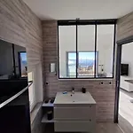 En plus d'une cafetière/théière, l'appartement est équipé d'une cuisine complète qui comprend un micro-ondes, un réfrigérateur et de la vaisselle. L'aéroport de Toulon-Hyères est à une distance de 30 minutes en voiture, et l'arrêt de bus Plage Bonnegrace est à une courte distance de cet établissement.